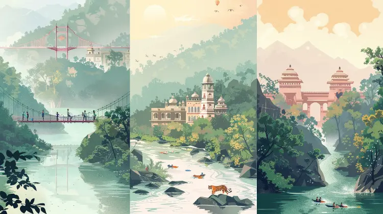 Rishikesh, located in the foothills of the Himalayas, offers a blend of spiritual rejuvenation and natural beauty. Known as the 'Yoga Capital of the World', it attracts thousands of spiritual seekers and adventure enthusiasts. The town is famous for its sacred Ganges River, believed to purify one's sins. The landscape is dotted with verdant forests, rolling hills, and cascading waterfalls, making it an ideal spot for nature lovers.
