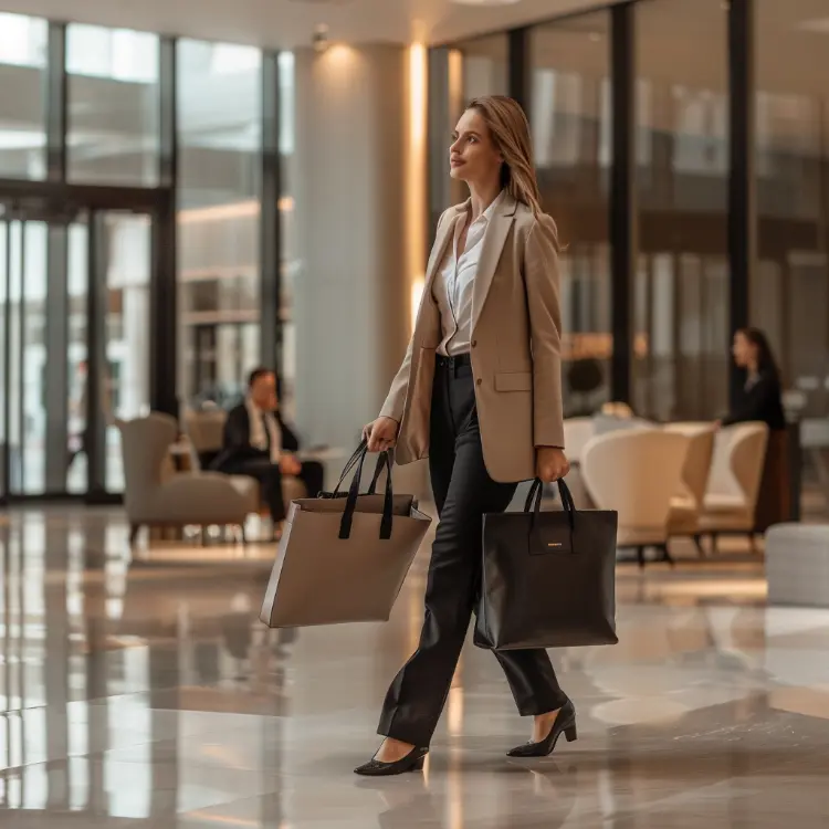 Big handbags have been in vogue for several years, and many styles adapt perfectly as chic work bags. A structured tote, designed with ample pockets and compartments, can serve the briefcase role with far more elegance and style. Look for totes that are the right size to fit papers and a laptop, ensuring functionality without sacrificing aesthetics.